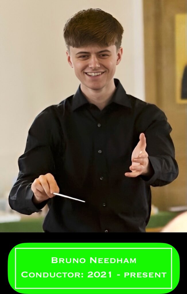 Because of the COVID-19 pandemic, like everyone else, we had to pause our meetings in person from March to August 2020. At the end of August 2020, the committee met via a Zoom link to discuss reuniting, including exploring the web to recruit a new conductor. We subsequently short-listed two possibilities and, as soon as we were allowed to reconvene, invited each applicant, by way of audition, to direct us on two separate evenings, one applicant per evening, at rehearsal. We settled on our present young conductor, Bruno Needham, and engaged him to start in October 2021.