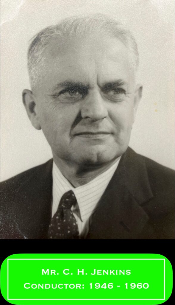 In 1946, after world hostilities ceased, Mrs Caesar restarted the orchestra and Mr Jenkins was invited to conduct. He remained the orchestra’s musical director for 14 years until he was forced to resign his musical activities in 1960 due to ill health.